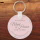 Dessa vackra nyckelkedjor är designade att få som gåva eller bröllopsförmån till maid of honor. Elegantens utformning har en silver-grått-faux-folie gräns med grått-text på blekens rosa-bakgrund. Det finns utrymme för hennes namn, bröllop-datumet och namnen till paret. Underbart sätt att tacka henne för att hon är en del av din speciella dag!