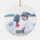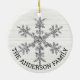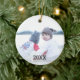 För en god julklapp eller en julklapp lägger du bara till ditt foto, namn och år till den här 2-sidiga moderna roliga silver-snöflingan. Framsidan av den här rundade keramiska prydnadsföreställningen har ditt favoritfamiljefoto bakom ett mjukt vitt övertoningsöverlägg på halvan av grund som låter året skina. Den här unika fotodesignen återgår till en faux mjuk grått- och vit träbakgrund och en enda faux silver glitter snowflake i mitten med ett rum längs grund för ditt namn eller anpassningsbar-meddelande, men du kan ta bort platshållartexten om du vill. Skapa dina egna fotodekorationer för julen med den här enkla, moderna designmallen för snöflake i silver som koordinerar med fullt av matchande objekt i arkivet ArfulDesignsByVikki.