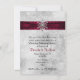 Elegant inbjudan till middag inför bröllopet gjort på en vit och ljust grå glänsande bakgrund. Grafik med ett rikt rubinrött sammetsband med vit spetskant löper över toppen på inbjudan och är dekorerad i mitten med en silvertonad och diamantliknande snöflinga. Anpassa den svarta och röda texten efter dina behov. Välj mellan många olika kortalternativ för det utseende du gillar bäst.