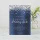 Skapa dina egna moderna inbjudningar till stil julfest. Faux sparkly silvery glitter top kant parade med ett ljus till mörk marin blå mbre borstad metall foil. Hela struktur i i form av skal, gnistra, metall och glitter skapas med en tryckt digital grafisk bild. Teckensnittet stil och färg kan anpassas.