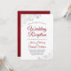 Dessa vackra brölloppsinbjudningar är utformade för gäster som är inbjudna till mottagningen, men inte själva ceremonin. De har en enkel men elegant design med silverfärgad falsk folie spets på en vit bakgrund. Texten växlar mellan grå och karmosinröd med en marmorerad djupröd baksida.