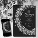 Silver-cirklar, stjärnor och prickar på en svart bakgrund. Informationen om party finns i chic med brev på dessa inbjudningar till julfesten under julen. MATCHING-objekt i vår butik.
