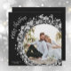 Väntande stjärnor, cirklar och prickar från silver på svart omger ditt favoritfoto med namn och God jul hälsning i chic med text *ANVÄNDA A VÅGRÄT PHOTO för bästa resultat eller skörd ditt foto till en kvadrat innan det laddas upp. Fler objekt i vår samling. Se till att kontrollera din beställning dubblan innan du lägger till den i din kundvagn eftersom det du ser på skärm är vad som skrivs ut. **Live Design Service kan hjälpa dig med fotolayouten om det behövs. DET KRÄVS MER POSTAGE FÖR KVAR STORLEK.