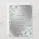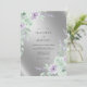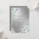 Denna design har en skimrande silvermetallisk bakgrund som skapar en sofistikerad och lysande stämning. Mjuka akvarellrosor i nyanser av lavendel och lila paras med delikat grön sagebladsväxt. De eteriska botaniska elementen ger en graciös och romantisk estetik perfekt för ett formellt vinter- eller vårfirande.
