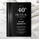 Silver Striped Black Grey 40th Birthday Party Inbjudningar
