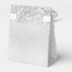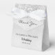 En snyggt faux silver-bakgrund som dekoreras med konetti. Med texten: Bröllop och Tack skrivet med ett modernt handskript i stil. Anpassa och lägg till namn och datum.