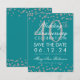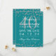 Elegant "40-års bröllopsdagsfirande"-design med silverfärgat falskt glitterkonfetti i teal samt anpassad namn- och detaljtext. Lätt att använda och lätt att anpassa. Beställ idag!
