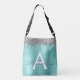 Silver Teal Glitter Brushed Metall Monogram Namn Axelväska
