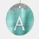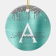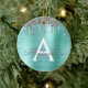 Silver Teal Glitter Brushed Metall Monogram Namn Julgransprydnad Keramik