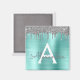 Silver Teal Glitter Brushed Metall Monogram Namn Magnet