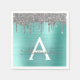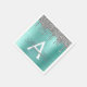 Silver Teal Glitter Brushed Metall Monogram Namn Pappersservett