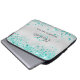 En snyggt, modern faaux silver metallisk tittar bakgrund. Dekorerad med teal, havsdamm från grönten faux glitter. Anpassa och lägg till ditt första namn, monogram initialer och fullt namn. Namn är skrivet med ett handskript i stil.