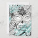 Silver & Teal Quinceanera maskerad födelsedagsinbjudan. Vacker silver och svart diamantmask & fjäderjuveler. Observera: Alla platta bilder!