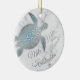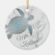 Den här eleganten har ett modernt hawaiiskt Julgran-prydnadsföremål med en silver-stamsköldpadda på marmorbakgrund och "Mele Kalikimaka" ord i ett handskript i eleganten. Anpassa den med året på framsidan och fotot på baksidan.
