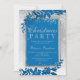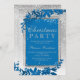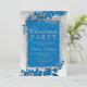 En modern, chic och elegant silver typografi Blommigt grönt julfestinbjudan med handmålad blåfärgad löv blad på en chic grått silver-övertoning med vit snö och snöflingor och blått royal.