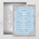 Silver Vinter Världens Under blå dop Dop inbjudan. Vacker snöflinga & tiara design. Observera: Alla platta bilder, De har inte riktiga juveler!