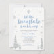 Fira en speciell dag för din älskade med denna söta vintervonderland-inbjudan! Denna design har silverglittrande snöflingor med en söt text "Ett litet snöflingor är på väg". Perfekt inbjudan för vintertema baby shower eller baby sprinkle.