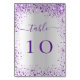 En faux silver tittar bakgrund som dekoreras med lila, violet faux sparkles Personalize och lägg till bordsnumren. Lägg till dina nummer en efter en.