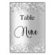Silver vit glittrande kalligrafi bord nio 9 bordsnummer