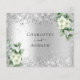 Observera att denna OSA är papper och mycket tunn. Kuvert ingår inte. För tjockare OSA kort (samma design), besök vår butik. En faux silver metallisk tittar bakgrund, dekorerad med mousserande faux glitter, vita blommigtar, blommor och eukalyptus greenery. Anpassa och lägg till svaret efter datum och ditt namn.
