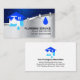 A silver water pipe system demarcates an upper blue water drops layer against its silver counterpart below. To the leaf is a home icon that is leaking water. At the lower right corner is the business name "PLUMBING SERVICE" which you can change alongside its contact details.