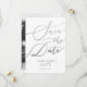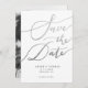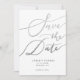 Elegant och enkelt bröllop spara datum-kort. Den handskrivna typograftexten står i faux silver glitter.