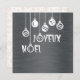 Silver greeting card wishing in French "joyeux Noël" in white with Christmas balls - editable text and background