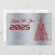 Silver wish card New Year with christmas tree Julkort