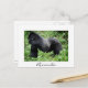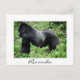Kort med ett vitt gräns och texten "Rwanda" med ett starkt silverbottenberg, ledaren för gruppen, i sin naturliga livsmiljö i den grönt djungeln av Afrikan mitten i "Vulkanernas nationalpark" i Rwanda.