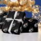 Försilvra baubles och stjärnor på god jul för en svartbakgrund som slår in papper.