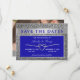 Modern, enkel kalligrafiskrift, elegant kunglig blå och silver glitter Bröllop Klara datum inbjudan med två datum och bild på paret.