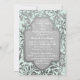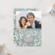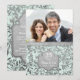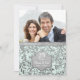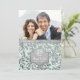 Vacker inbjudan till 25-års bröllopsdag på pastellgrön akvatisk bakgrund med en överlagring av eleganta silverblad. Matchande silverband på framsidan och baksidan av kortet. Ladda upp ett speciellt foto för att ersätta denna fotomall. Anpassa inbjudans text på framsidan och baksidan med din information. Denna design finns tillgänglig på andra föremål i min butik.