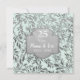 Vacker inbjudan till 25-årsjubileum för bröllop på pastellgrön akvamarin bakgrund med en överlagring av eleganta silverblad. Matchande silverband på framsidan och baksidan av kortet. Anpassa framsidans och baksidans text med din information. Denna design finns tillgänglig på andra föremål i min butik.