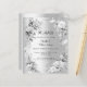 En falsk silverfärgad bakgrund. Dekorerad med blommor och ett falskt silverband. Personifiera och lägg till namn och detaljer. Perfekt för 25-års silverbröllop.