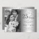 25-års bröllopsinbjudan med foto. Elegant design i silver med skrivstil och diamantkonfetti. Kan anpassas för alla år av äktenskap. Skål för 25 år!
