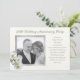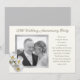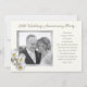 Silverbröllopsinbjudan med fotomall. Ecru-färg med silvergrå ram runt ett foto av paret. Vita orkidéer med gula mittpunkter pryder det nedre hörnet och texten är också silvergrå. Anpassa en rad längst upp med äktenskapsår och typ av tillställning - fest eller förnyelse av löften - och lägg enkelt till all festinformation med hjälp av den tillhandahållna mallen. Lägg till blanksteg om det behövs för att jämna ut texten. Baksidan är enfärgat grå.
