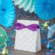 Silverfärgad fyrfaldig blomsterbukett i lila till presentaskar