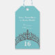 Silverfärgad glittertiara krona anpassad festfavorit etikett. Anpassa som du vill. Matchande artiklar finns tillgängliga.