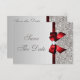 Eleganta skräddarsydda silver och röda "Save the Date" bröllopsinbjudningskort med vacker tryckt bild av silverglittrande mönster, en söt blank röd tryckt bild av rosett och band samt vacker tryckt bild med diamantglans. Dessa klassiska, glamorösa och fashionabla inbjudningskort är dekorerade på båda sidor. Vackra, chic, trendiga och moderna inbjudningskort. Observera: Alla inbjudningskort på Zazzle har platta tryckta bilder. Text, teckensnitt och typsnittsfärg kan alla anpassas. Om du behöver hjälp med att anpassa din produkt, vänligen kontakta mig via min butik. Jag hjälper gärna till. Jag har matchande produkter i min butik.
