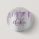 Silverglitter dropar lila anpassad monogramnamn knapp