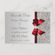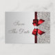 Silverglitter, Röd Båge & Diamant Save the Date Spara Datumet