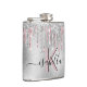En falsk silver metallisk folie som ser ut som bakgrund med rosa och falskt silver glitterdropp, målning som droppande effekt. Anpassa och lägg till ett namn och monogrambokstav. Namnet skrivs i svart med en stor, fet modern handskriven stilsnurr med svansar. Monogrambokstaven är rosa. För att behålla svansarna, radera endast provnamnet, lämna utrymmena eller emojierna före och efter namnet. Perfekt som födelsedagspresent, present till dig själv, brudtärnor, möhippa.