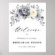 Elegant vinterblommig välkomstskylt för övningsmiddag med elegant grå, elfenbensfärgade och silverfärgade akvarellblommor och frostiga gröna växter. Kontakta mig för hjälp med anpassning eller om du behöver någon annan produkt med denna design.