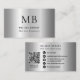 Skapa ett starkt och stilrent intryck med detta silvergrå falska borstade metalliska monogram-visitenkort. Designat med en slank silver- och gråfärgad falsk metallbakgrund inspirerad av rostfritt stål, ger detta kort en polerad, borstad metallisk look som känns både modern och professionell. På framsidan kan du anpassa ditt namn, monogram, initialer och företagsnamn i en ren layout som sticker ut utan ansträngning. Baksidan är helt anpassningsbar med dina kontaktuppgifter, inklusive e-post, adress, webbplats, telefonnummer, sociala medier och en praktisk QR-kod för enkla kontakter.