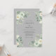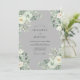 Denna design har en sofistikerad silvergrå bakgrund prydd med ömtåliga akvarellblommor. Krämiga vita rosor och silverdollareukalyptusblad skapar en lugn och elegant atmosfär. Den mjuka, dämpade paletten är perfekt för ett förfinat vinter- eller klassiskt vårbröllop. Detta konstverk fångar en känsla av tidlös grace genom sina måleriska botaniska detaljer.
