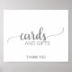 Denna silvergråa skylt med kalligrafiskort och presenter är perfekt för en elegant bröllop. Den silvergråa designen har en enkel chic typografi. Textraden längst ner på skylten kan anpassas med datumet, brudens och brudgummens namn eller ett kort meddelande som "Tack".
