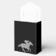 Tältstils godisaskar har en tävlingshäst i falskt silverglitter på svart och svarta och vita ränder högst upp. Ändra bakgrundsfärgerna till vad som helst! Perfekt för Derby-fest, Derby-middag, födelsedagsfest, pensionsfest och mer. Matchande föremål i vår kollektion.