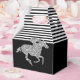 Gavelpresentlådor med en kapplöpningshäst i falskt silverglitter på svarta och vita ränder längst upp och svart längst ned - ändra bakgrundsfärgerna till vad som helst! Perfekt för Derby-fest, Derby bröllopsdusch, födelsedagsfest, pensionsfest och mer. MATCHANDE artiklar i vår kollektion.