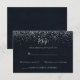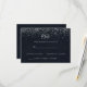 Denna silverkonfetti-kalligrafi-svar är perfekt för en rustik bröllop. Den enkla och eleganta designen har klassisk och fancy script-typografi med en blå bakgrund och silverkonfetti.