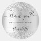 Falsk silverbakgrund dekorerad med konfetti, gnistrar. Med texten: Tack för att du firade med mig, med ett litet hjärta. Personifiera och lägg till ditt namn.